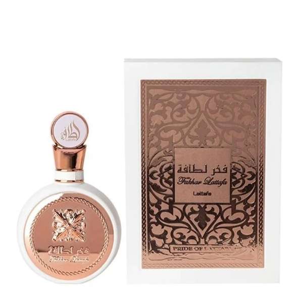 عطر ادکلن لطافه فخر | Lattafa Fakhar نخستین بار در سال 2015 روانه بازار شد به عنوان عطری زنانه و بسیار جذاب و شیک معرفی شده است . و در دسته عطر های چوبی گلی مُشکی قرار می گیرد. از ترکیبات بکار برده شده در این عطر می توان به پرتقال، سیب ، انگور فرنگی سیاه، هلو ، گلابی ، رز ، یاس، شکوفه پرتقال ، مشک ، وانیل ، نعناع هندی ، چوب صندل سفید اشاره کرد.